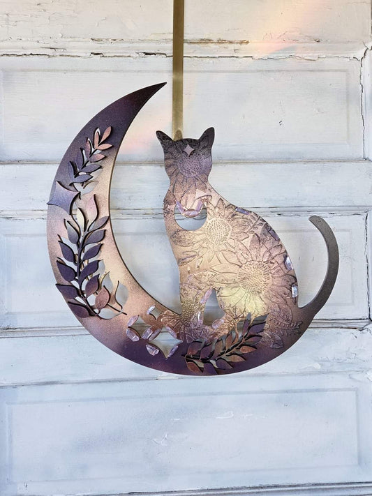Amethyst Crystal Cat Crescent Moon Wall Art