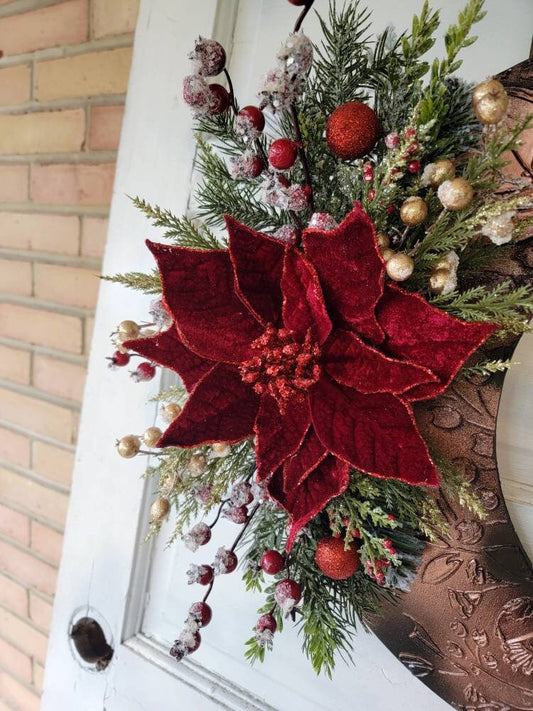 Poinsettia Crescent Moon Christmas Cat Wreath