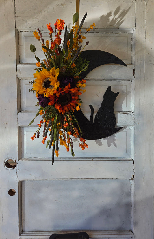 Orange, Yellow & Purple Fall Cat Moon Wreath