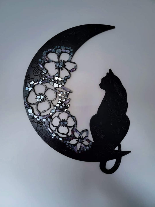 Amethyst Crystal Cat Crescent Moon Wall Art
