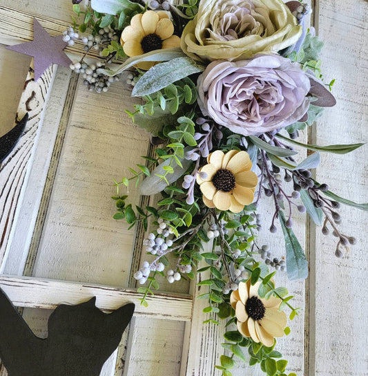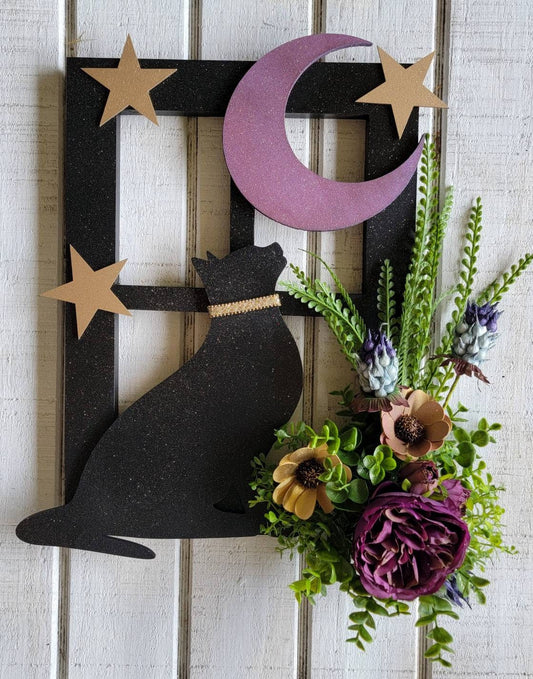 Witchy Moon & Stars Window Pane Cat Wall Art